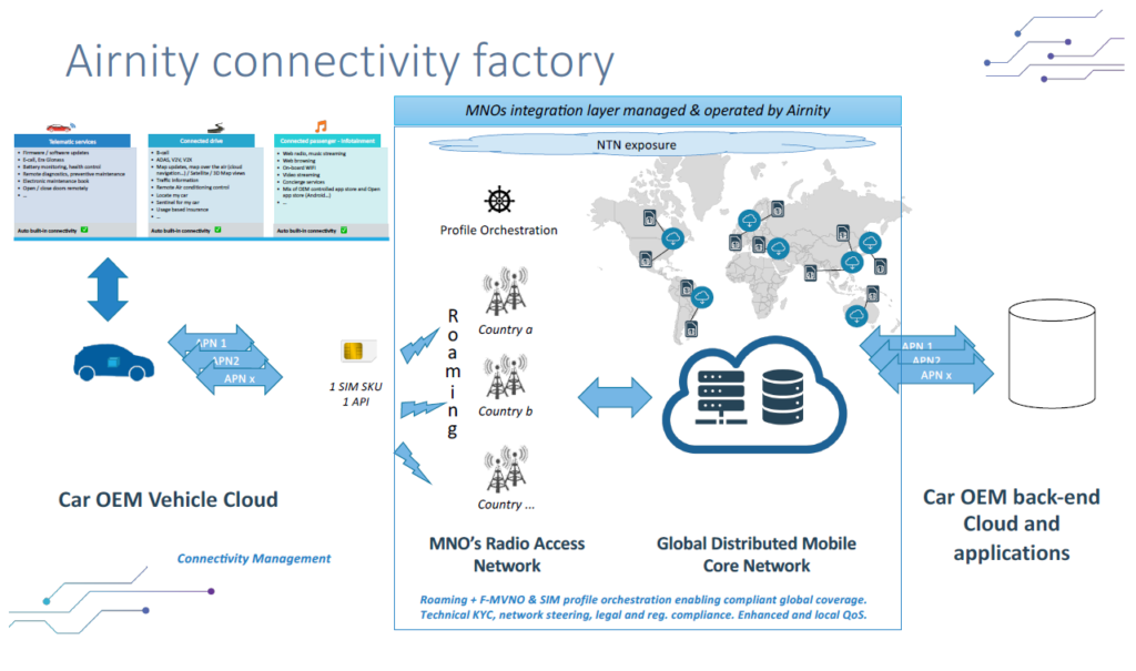 A strategic pivot is required. Airnity, the Automotive Connectivity Factory, represents this necessary paradigm shift. Established as an automotive pure-player Full-MVNO and joint venture by leading OEMs (Stellantis and Renault Group), Airnity is built by and for the automotive industry to regain control and commoditize global connectivity and is bound to federate other car OEMs around the connectivity challenge simplification.