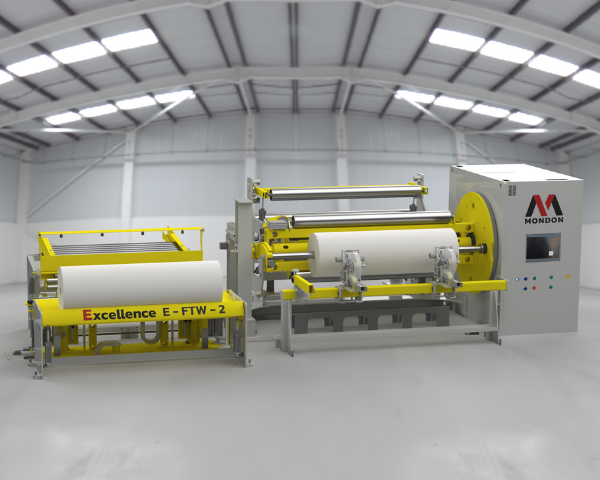 MONDON presents its range of winders and unwinders, EXCELLENCE. This range is composed of E-FTW rewinders, allowing high productivity first-class results. E-FTW non-stop turret winder supports 2 shafts which allow unloading a bobbin in hidden time while rewinding a new one. Automatic change can be performed at full speed or 0 speed to get a perpendicular cut. E-FTW combines performance with durability and first-rate technology and provides customer-specific solutions. E-FTW winder control is performed thanks to a network application with the upstream processing line. Due to its non-stop process, the winder avoids the transition sequences which could produce bad quality products.