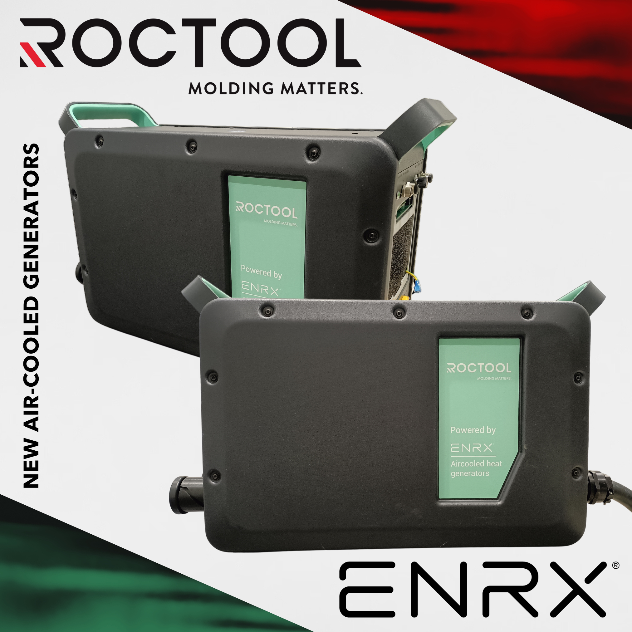 Roctool, in partnership with ENRX Group, launched an air-cooled generator, available in 25kW and 50kW models. Compact and lightweight, it features built-in handles for better portability. The 25kW version comes in both 200V and 400V options. Designed for easy, plug-and-play installation, it’s ideal for space-constrained environments. This upgrade supports Roctool’s commitment to efficient, precise molding technology with improved energy savings and operational flexibility. See these generators on the Roctool stand, Hall 15, C41.